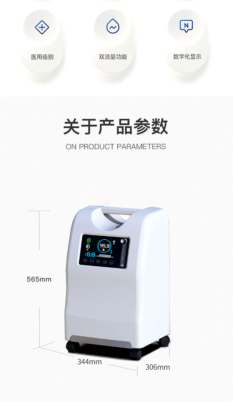 5L小型醫用制氧機:出氧量高達5L/min,制氧純度高,可48小時持續輸出高濃度氧氣,氧濃度高達達93%±3%,超低分貝,適用于老人、孕婦,也適用于白領、商人、學生等需要補氧者。